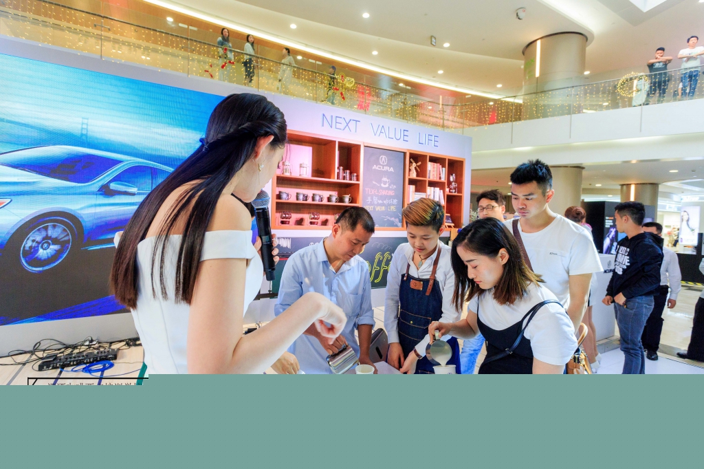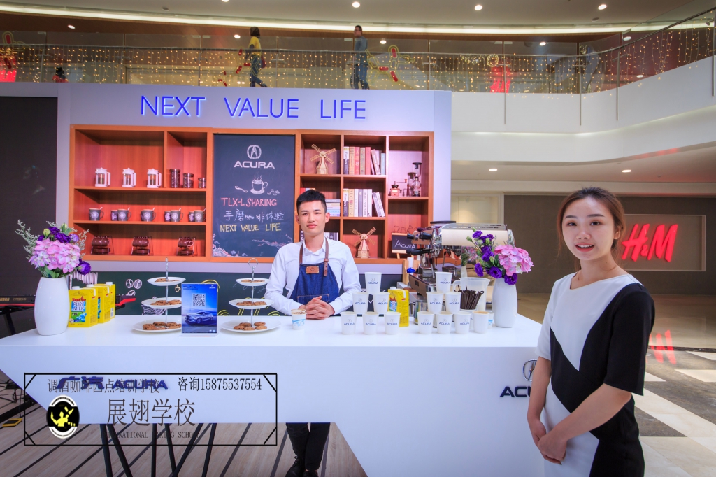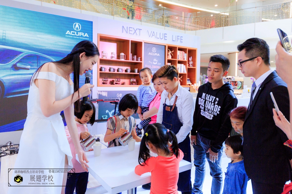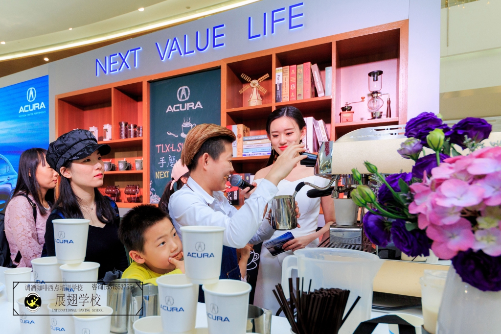 2018年3月29日-4月1日在深圳皇庭廣場謳歌汽車巡展邀請【佛山展翅調酒咖啡西點培訓學校】咖啡師蔡文丹、楊瑞宏同學作為咖啡分享講師。為了整體活動氛圍及制作咖啡拉花教學!想做一名專業咖啡師需要不斷的學習及實踐、更不且提高了我們一個社交能力以及實踐不同場所情景及咖啡拉花教學!這次咖啡拉花活動實踐表現非常出色,希望再接再厲做到更好,只有不斷的實踐才能突破自我。學咖啡就是要用心,在這里每個人都帶著夢想到【佛山展翅調酒咖啡西點培訓學校】、在展翅不單可以學習到技術,更可以受到不同場合活動的訓練及實踐!接下來我們回顧一下當天謳歌巡展咖啡拉花教學活動現場花絮。