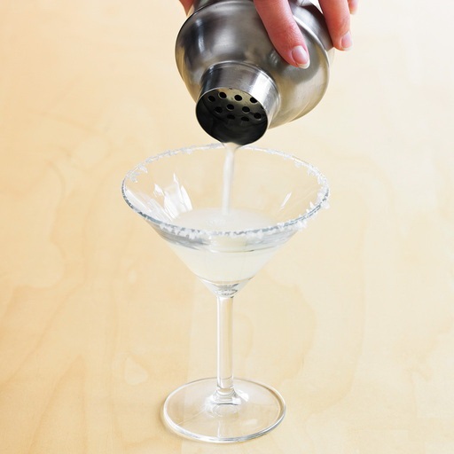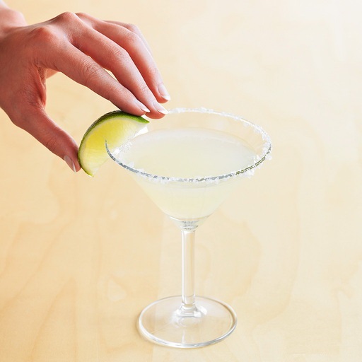 材料:青檸兩片,橘味白酒一盎司,龍舌蘭酒1.5盎司,青檸汁0.5盎司,粗粒鹽若干,冰若干