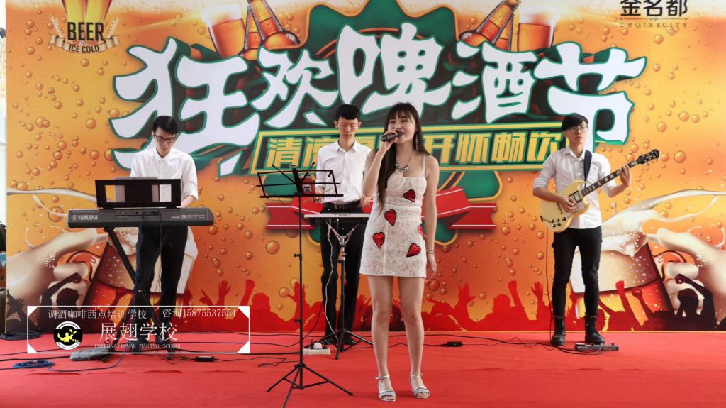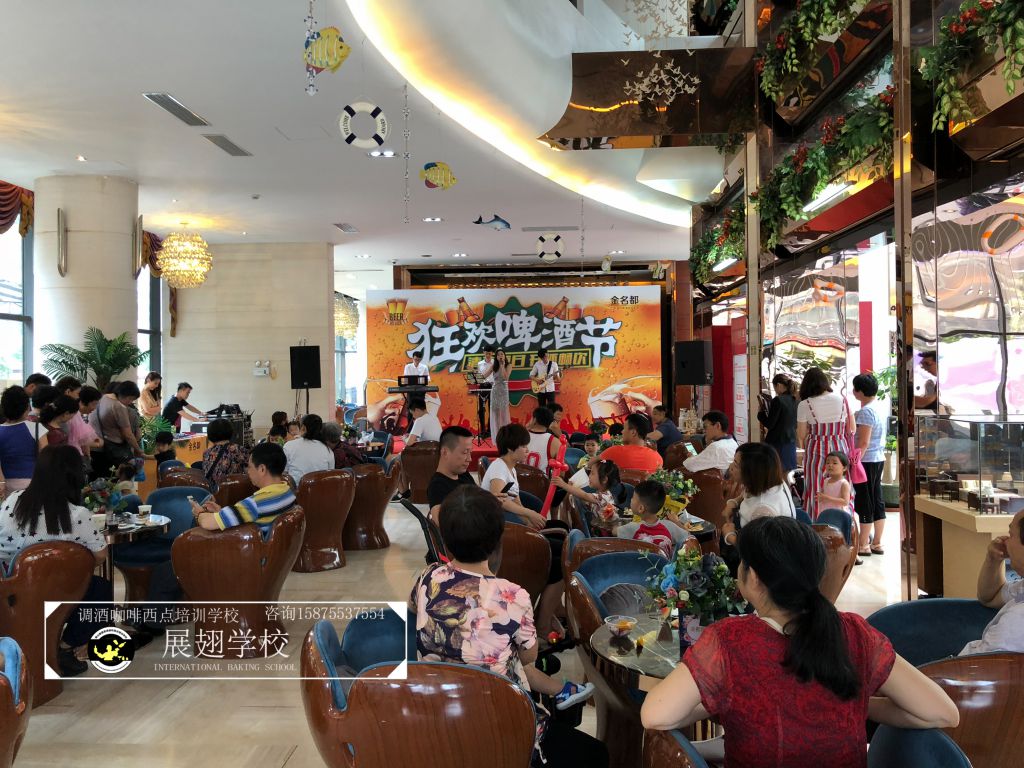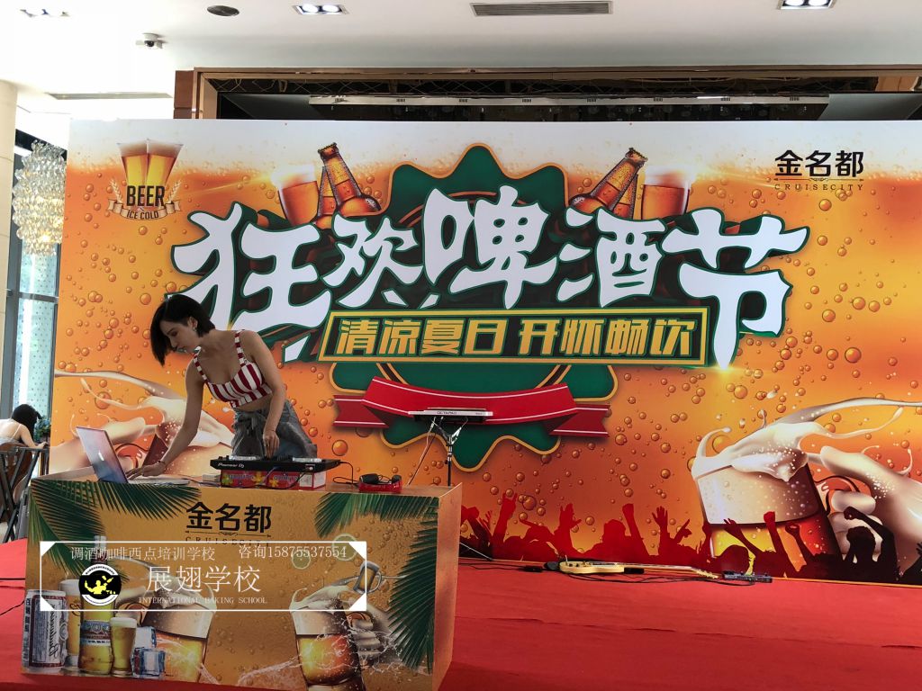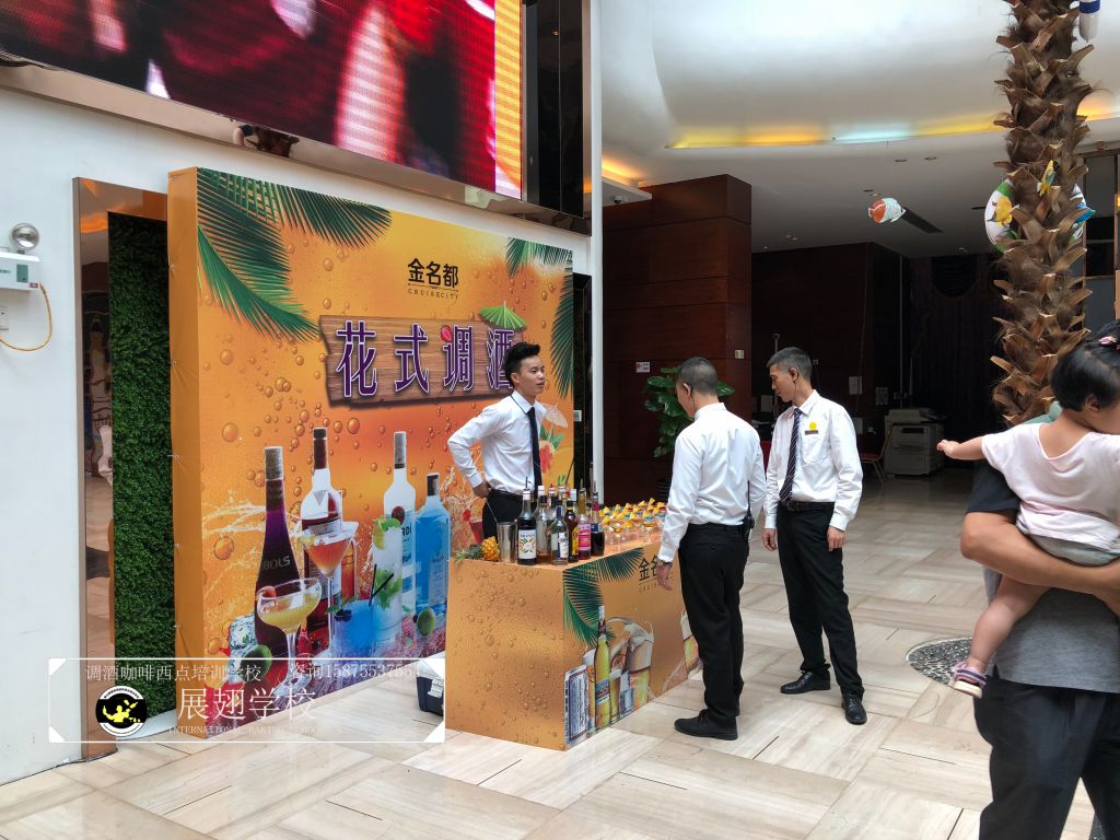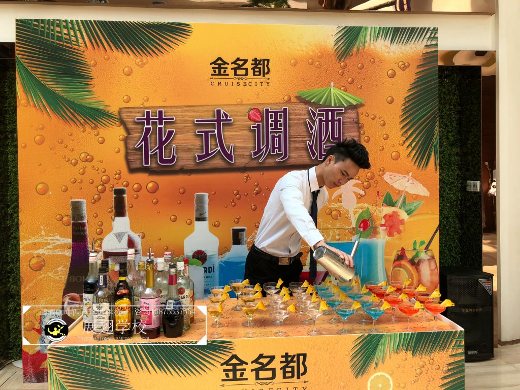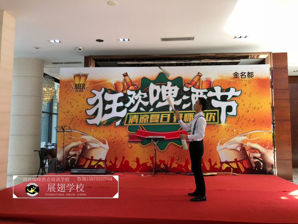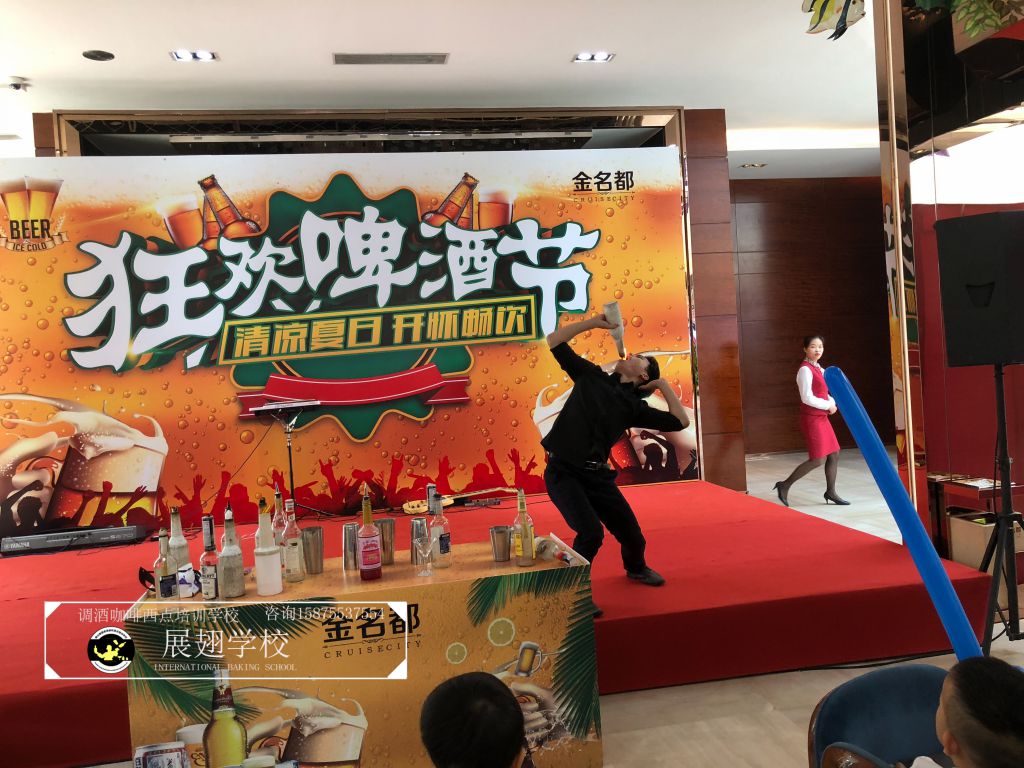 #恒大•金名都啤酒節花式調酒表演實踐活動#炎炎夏日,如此高溫的佛山像是火爐一樣,恨不得每天在冰箱里渡過,可就在這樣炎熱的氣候里學員們還是堅持不懈的外出做活動,即能開闊視野,又能鍛煉自我,讓夢想化作現實的搖籃,學員們的未來 我們攜手播種希望;“佛山展翅調酒咖啡西點培訓學校",我們伴你一路而行。希望堅持不懈的努力使每一位學員都能站在夢想的舞臺成為眾人的焦點