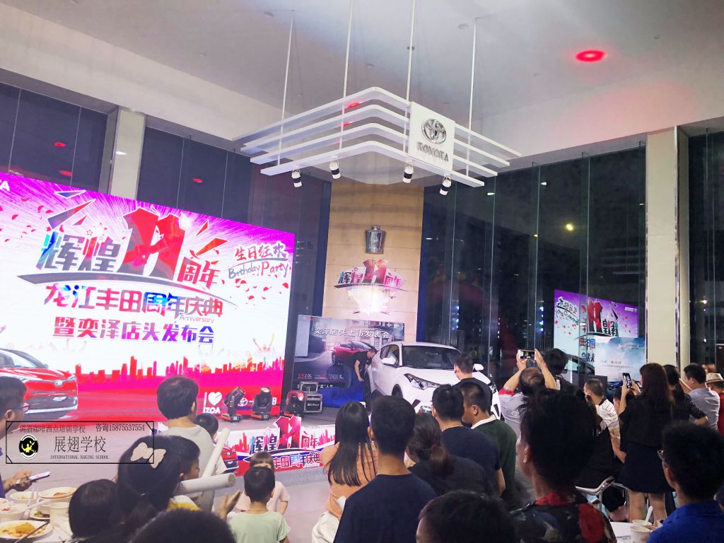 2018年9月10日,佛山展翅咖啡調酒西點培訓學校的調酒師學員工受邀為龍江豐田慶典提供雞尾酒,調酒技能與雞尾酒品質都頗受全場好評。“酷炫、駕趣、安全”定位的是豐田汽車嗎?怎么感覺更適用在調酒上呢?既快且準且狠還出情趣,連原本想著只關注汽車的大款也因此成為雞尾酒的俘虜。