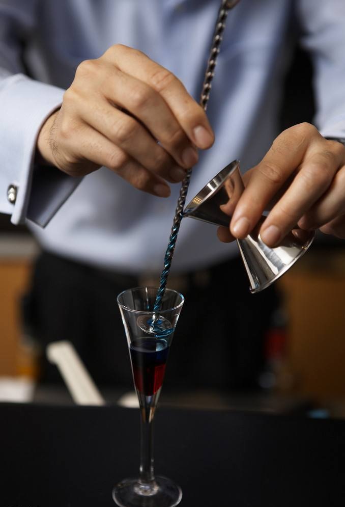 主要用于調制各款彩虹雞尾酒,調制要求酒水之間不混合,層次分明,色彩絢麗。分層要熟悉酒水密度,按密度大小從順序倒入。