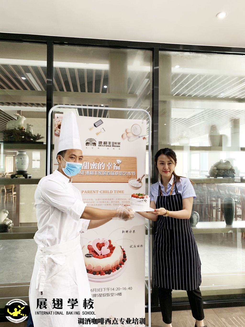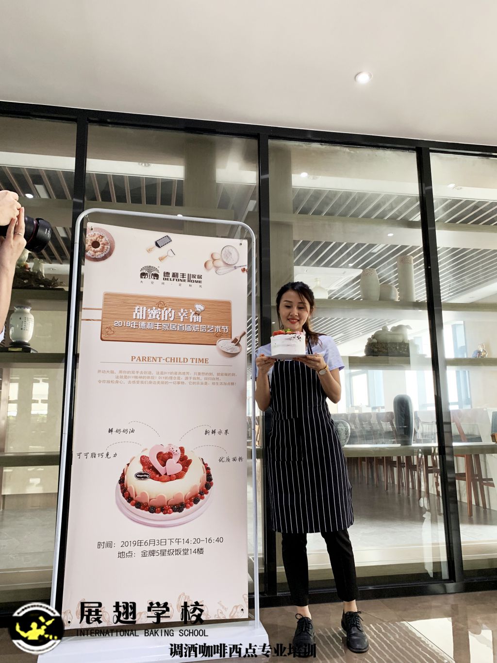 2019年6月3日德利豐家具在佛山南莊金牌5星級飯堂舉行烘焙藝術節,特邀請了佛山展翅調酒咖啡西點培訓學校的高級烘焙師蔡慶偉到現場到現在做DIY蛋糕體驗指導,好多小姐姐都是第一次體驗呢