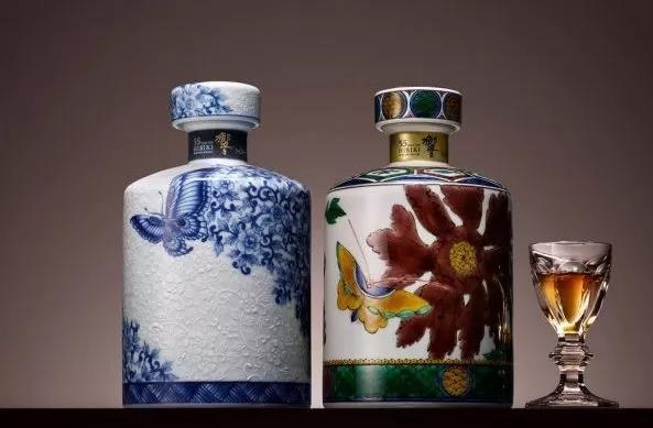2017年,三得利為慶祝日本瓷創(chuàng)立400周年而推出了一對酒瓶,分別由有田燒及九谷燒方式制作而成,并將牡丹和蝴蝶圖案描繪在瓶身上。