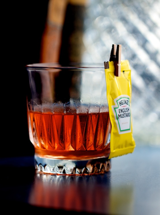 *Blend a salt-beef bagel with mustard purchased from local London shop Bagel Bake with neutral grain spirit; cold infuse for three hours then distil with evaporator; cut with water.